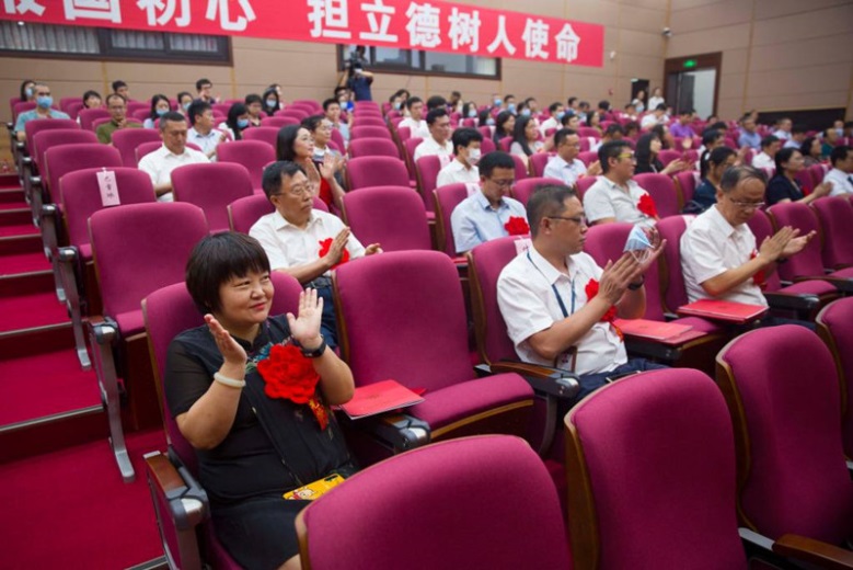 一支粉笔勤耕耘,三尺讲台育桃李,会场上老师和同学们关注着每一位获奖者的名字,倾听先进模范事迹,迈上“守教育报国初心、担立德树人使命”新征途。