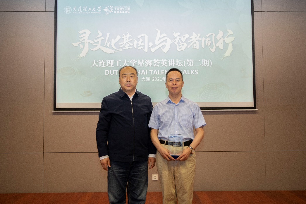 讲座后,卢玉峰为程相占颁发星海荟英讲坛纪念牌。