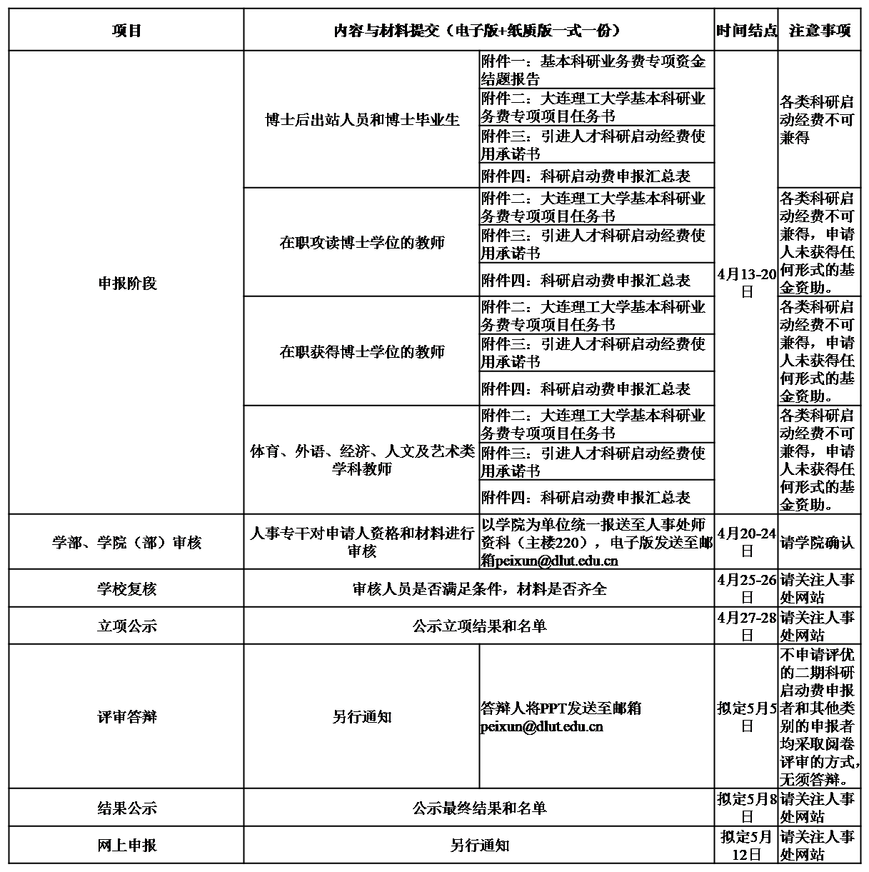 2014年8月1日至2015年7月31日期间来校工作,来校时为中级及以下专业技术职务且受聘于教学、科研岗位的博士后出站人员和博士毕业生,一期科研启动经费结余为零且通过验收者,可以申请二期科研启动经费(2015年8月1日-9月30日期间来校并获得一期科研启动费资助,现已结题者也可申报)。二期科研启动经费将根据一期考核结果实施动态资助,对于一期考核优秀者,可根据评审意见提高二期科研启动经费的支持额度;对于一期考核良好者,保持原定的支持额度;对于一期考核合格者,根据评审意见可保持原定的支持额度,也可降低支持额度;一期考核不合格者,取消二期科研启动经费的支持。一期结题和二期申请表格请见《大连理工大学基本科研业务费专项项目结题报告》(附件一)和《大连理工大学基本科研业务费专项项目任务书》(附件二)。