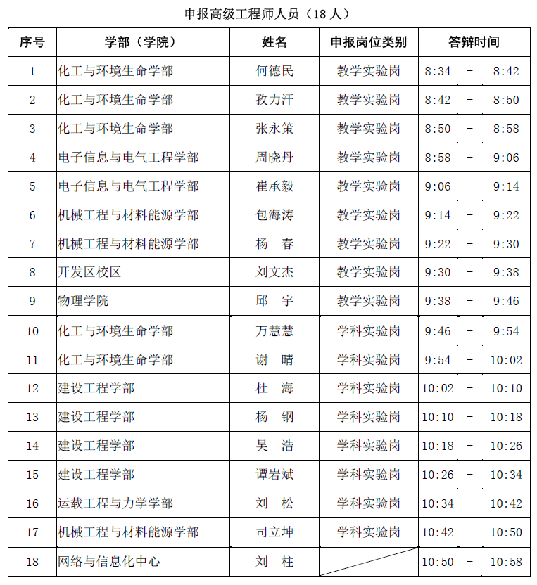 现将2018年竞聘实验技术系列高级专业技术岗位答辩有关情况通知如下: