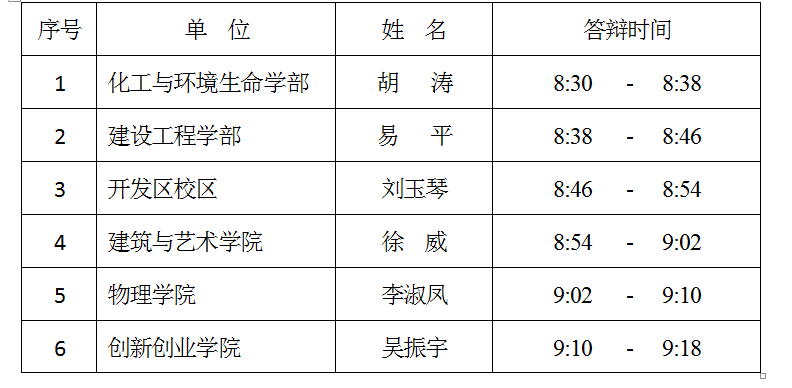 每人自述5分钟,评委提问3分钟。