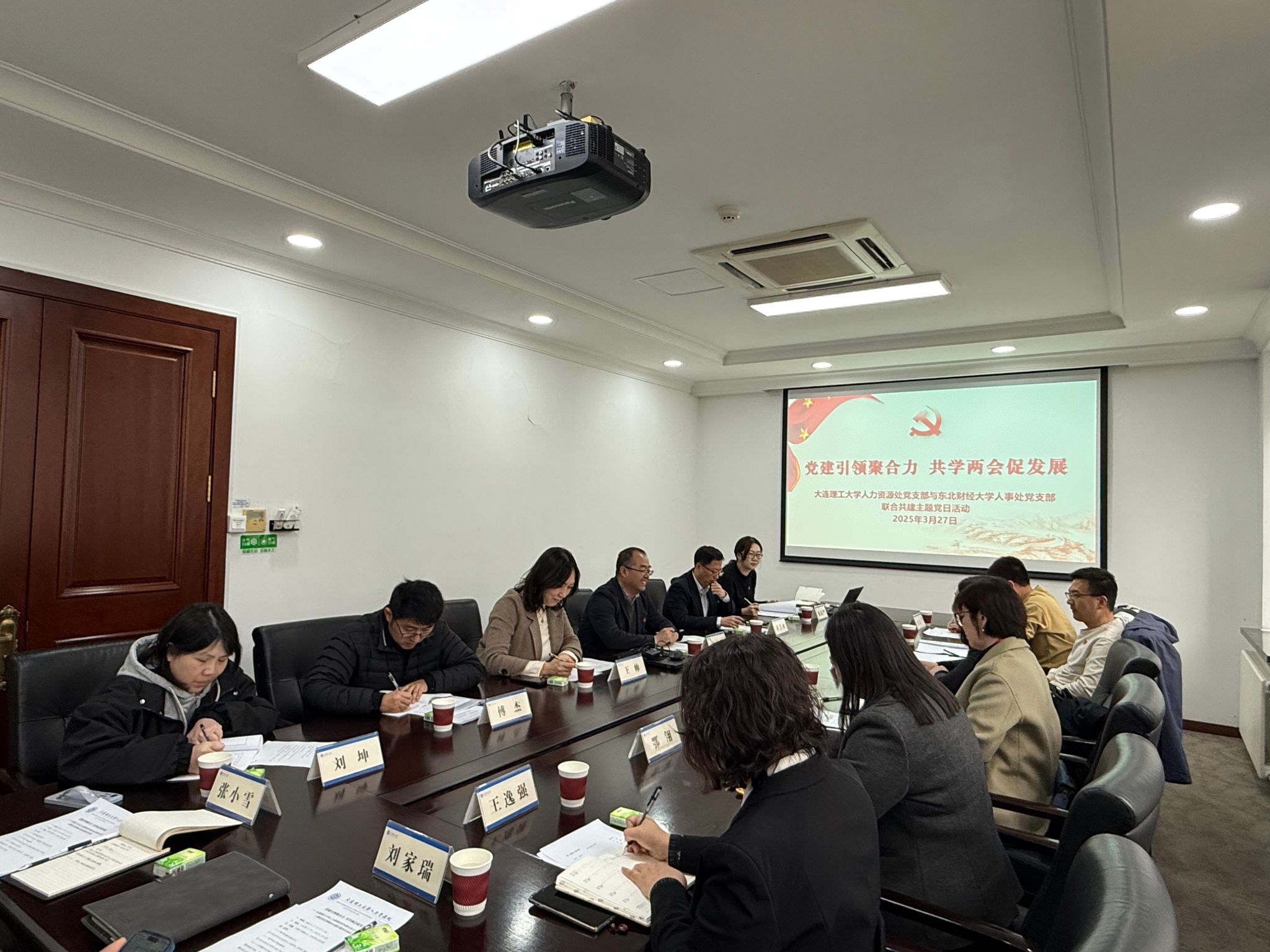 为深入学习贯彻2025年全国两会精神,强化党建引领作用,大连理工大学人力资源处(党委教师工作部、党委人才办公室)党支部与东北财经大学人事处党支部于3月27日联合开展“党建引领聚合力 共学两会促发展”主题党日活动。双方党支部书记及党员代表参加活动,共同领学2025年全国两会精神,重点围绕政府工作报告中关于教育、科技、人才一体化发展的战略部署,结合高校人事管理实际,分享学习体会。